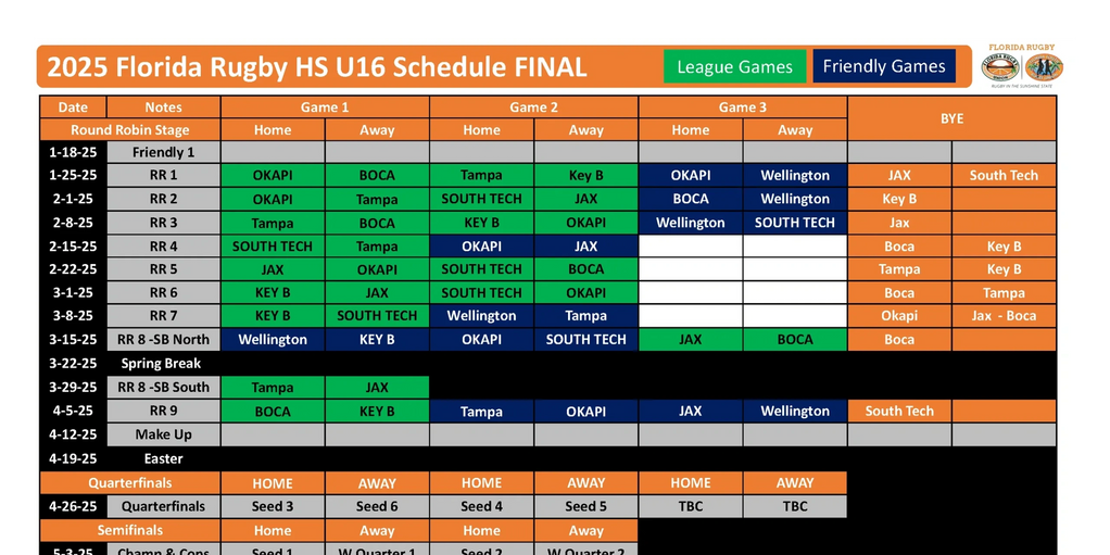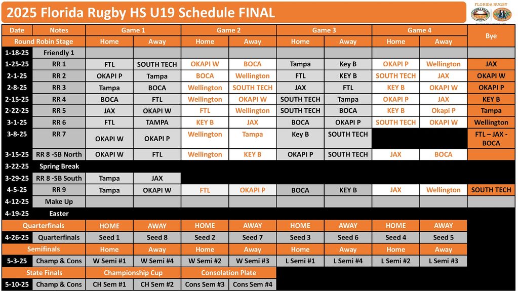 EXAMPLE 2025 - U19 - Schedule